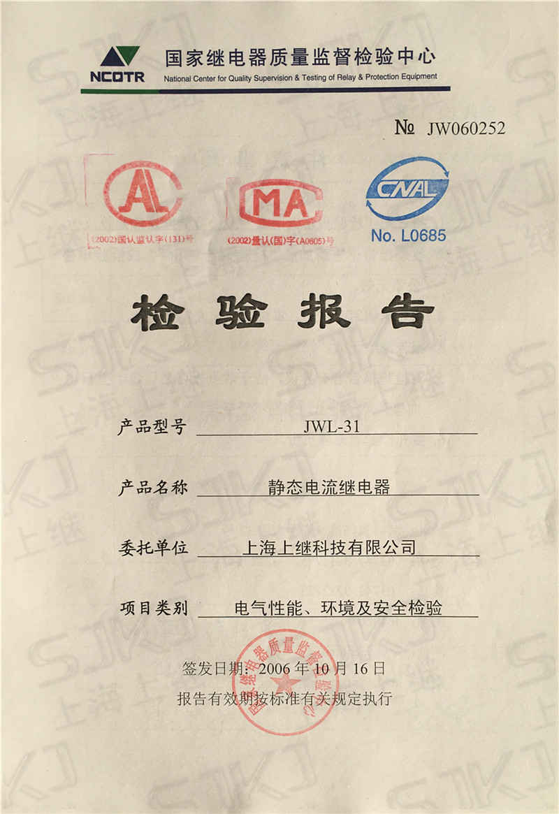 > JWL-31檢驗報告