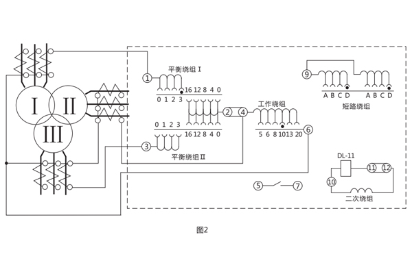 當(dāng)用BCH-2型繼電器來(lái)保護(hù)電力變壓器時(shí),平衡繞組的圈數(shù)根據(jù)這樣的條件來(lái)選擇,即當(dāng)發(fā)生穿越短路時(shí).所有繞組的匝數(shù)應(yīng)相等。