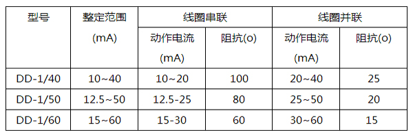 繼電器動作電流的整定范圍和線圈阻抗值。