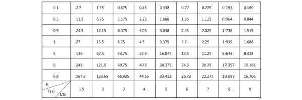 8、典型反時限特性,見下表: