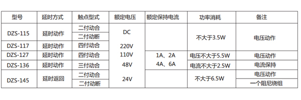 DZS-115、DZS-117為延時動作繼電器;DZS-127、DZS-136型為延時電壓動作和電流保持繼電器;DZS-145型為延時返回繼電器。